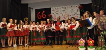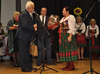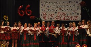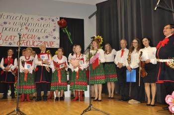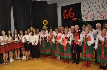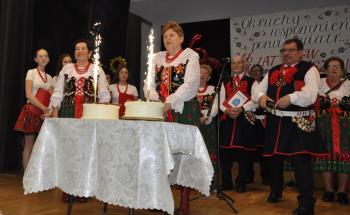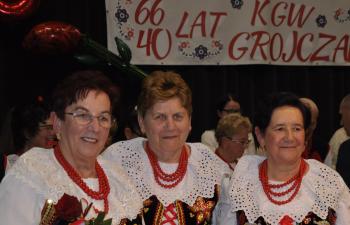 Główne uroczystości odbyły się w grojeckim Domu Ludowym, gdzie pojawili się zaproszeni goście. Życzenia i gratulacje dla wszystkich członków zespołu „Grojczanie” oraz Pań z KGW na ręce przewodniczącej KGW - Marii Śliwki złożył Wójt Gminy Oświęcim Mirosław Smolarek, który na jubileuszowych obchodach pojawił się wraz z małżonką Beatą.