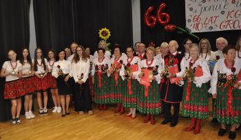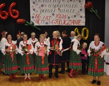 Do życzeń dołączyli samorządowcy, przedstawiciele administracji, lokalnych instytucji i przyjaciele na czele z zespołem śpiewaczym „Kalina” z Polanki Wielkiej. Nie obyło się bez wyróżnień i uhonorowania byłych i obecnych muzyków z zespołu „Grojczanie” oraz Pań z Koła Gospodyń Wiejskich w Grojcu.