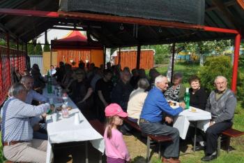 W czwartkowe popołudnie 1 maja na terenie grojeckiej pasieki bawiło się kilkadziesiąt osób. Wpierw jednak proboszcz miejscowej parafii, ks. Józef Zborek wraz z bartnikami pomodlił się za pomyślność pszczelarzy, pszczół i dobrych zbiorów. Prosił o wsparcie patrona bartników, św. Ambrożego.