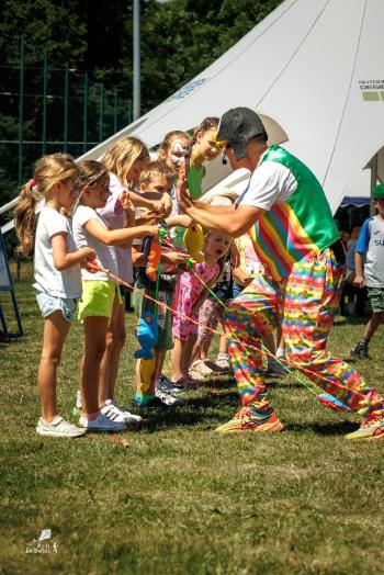 IV Przedszkoliada z Treflikiem pod honorowym patronatem Starosty Oświęcimskiego Andrzej Skrzypiński i Wójta Gminy Oświęcim Mirosław Smolarek oraz Trefl i Synthos