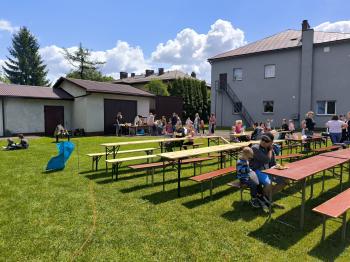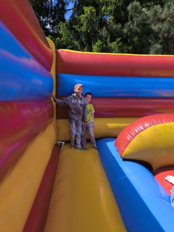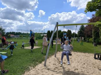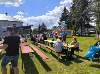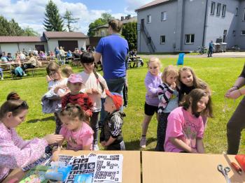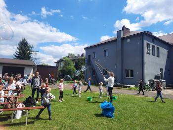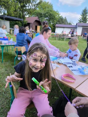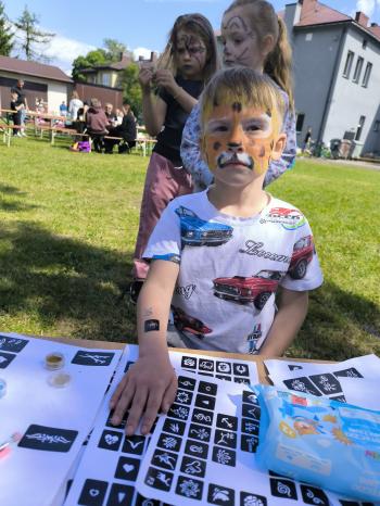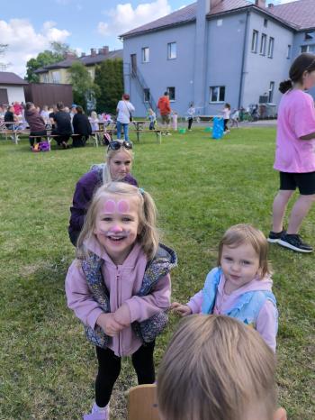 W tym dniu, to jednak nie był koniec atrakcji. Na dzieci czekały jeszcze niespodzianki związane z Dniem Dziecka. Dzieci świetnie bawiły się podczas korzystania z dmuchanych zjeżdżalni, z przygotowanych przez nauczycielki kącików w których miały robione brokatowe tatuaże, malowane twarze, robione kolorowe warkoczyki. Dodatkowo, rozpalone zostało ognisko, gdzie każdy mógł przygotowywać sobie kiełbaski. Na dzieci i dorosłych czekał również poczęstunek w postaci: ciast upieczonych przez rodziców, popcornu, waty cukrowej. Impreza przebiegła w przyjemnej i wesołej atmosferze.