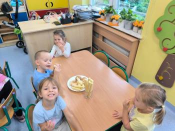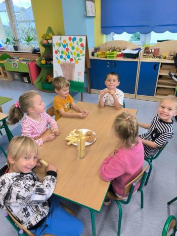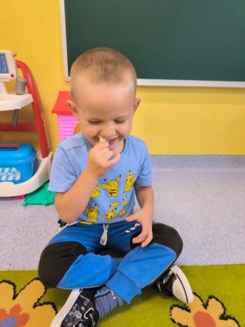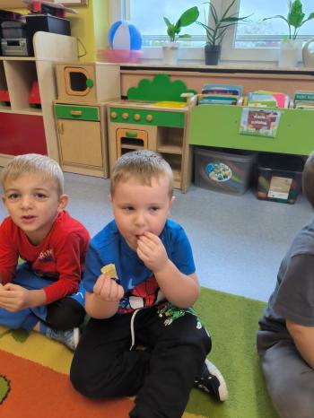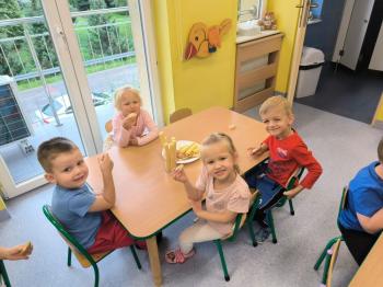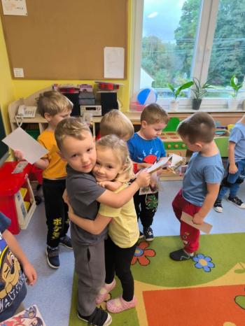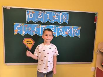 Dzień chłopaka w grupie Biedronek upłynął pod hasłem zabaw sportowych. W tym dniu nasi chłopcy musieli wykazać się sprawnością ruchową, zwinnością i szybkością podczas przygotowanych dla nich dyscyplin sportowych. Ze wszystkimi zadaniami chłopcy poradzili sobie znakomicie. Jednak czekał na nich jeszcze jeden test – test odwagi. Zadaniem chłopców było zjedzenie małego kawałka cytryny. Chłopcy udowodnili, że są bardzo dzielni i z zadaniem świetnie sobie poradzili. Na zakończenie na chłopaków czekały dyplomy i upominki, które wręczyła im ich koleżanki z grupy.