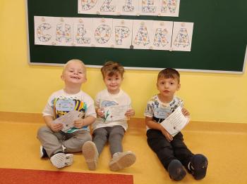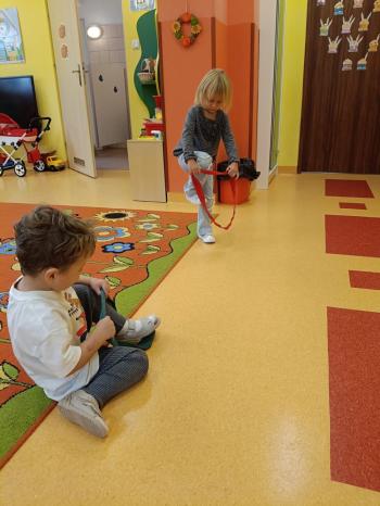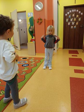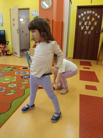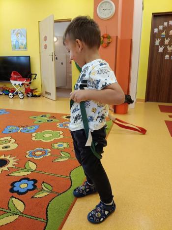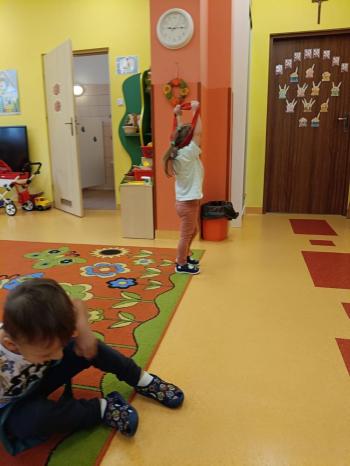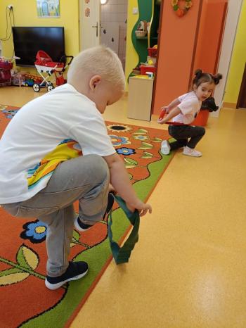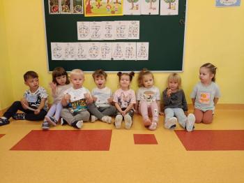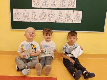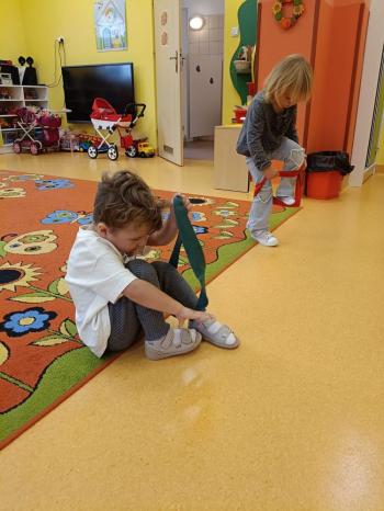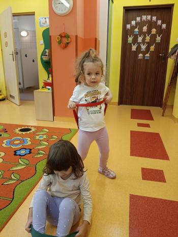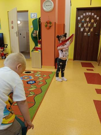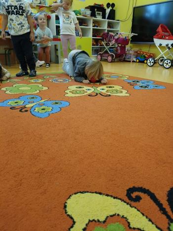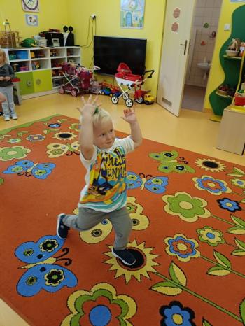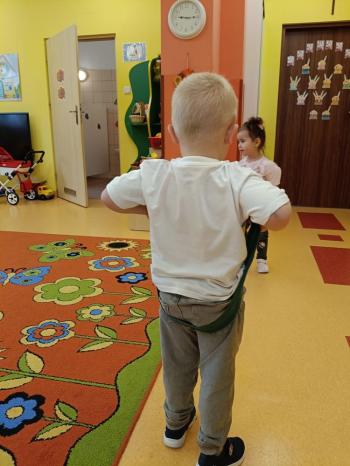 We wtorek 30.09 w najmłodszej grupie wszyscy świętowali Dzień Chłopaka. Na początku wszyscy zamienili się w super bohaterów, bo do wykonania zadań potrzebowaliśmy supermocy! Pierwszym zadaniem był spacer z woreczkiem na głowie, gdzie musieliśmy zachować równowagę i ostrożność. Na szczęście każdemu się to udało. Kolejnym wyzwaniem był bieg do szarfy i przełożenie jej od stóp do głowy. Tutaj najważniejsza była szybkość i sprawność. I znowu udało się to każdemu. Nie było chwili wytchnienia bo już czekało na nas kolejne zadanie. Na moment zamieniliśmy się w kotki i toczyliśmy