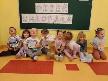 piłeczki jak one. A na koniec rzucaliśmy woreczkami do celu. Oj to było chyba najtrudniejsze zadanie bo nie każdemu się to udało, ale dzielnie próbowaliśmy. Na koniec pani nagrodziła wszystkich dzielnych superbohaterów słodkim poczęstunkiem, a chłopcy otrzymali odznaki superbohatera i drobne upominki. Oczywiście nie zabrakło pamiątkowych zdjęć.