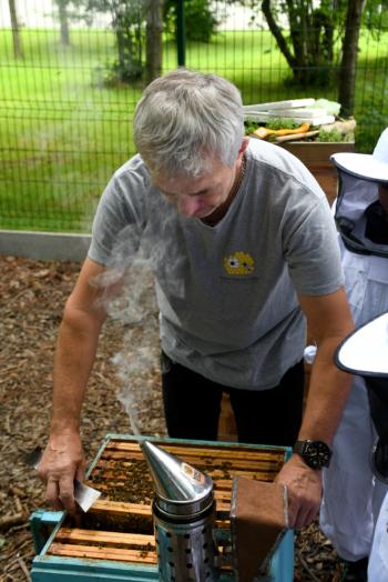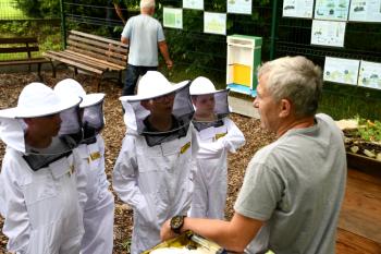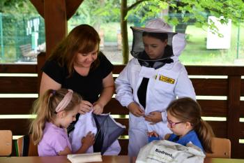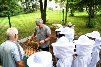 Zajęcia były podzielone na dwie części - wizytę w Pasiece Edukacyjnej z prezesem Koła Pszczelarzy Ziemi Oświęcimskiej Bogusławem Rajem oraz zajęcia z ekodoradczynią Powiatu Oświęcimskiego, Edytą Burman.