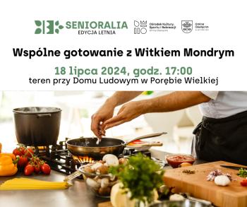 18 lipca, godz. 17:00 - Wspólne gotowanie na zewnątrz z Witoldem Mondrym, teren przy Domu Ludowym w Porębie Wielkiej, ul. Wadowicka 79,